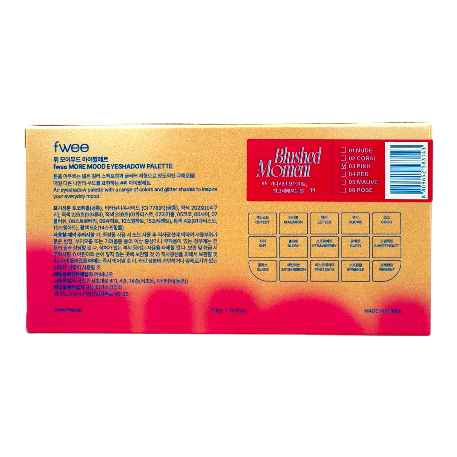 11.9g eyeshadow palette with multiple shades