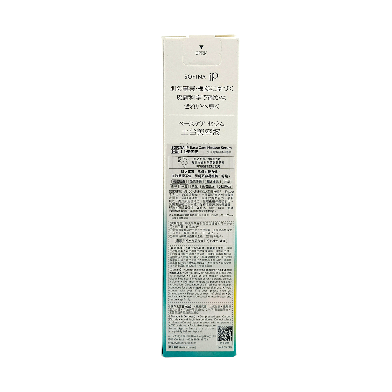 Introducing Sofina iP Base Care Mousse Serum in a 90g press-can — an innovative, airy mousse-serum that primes and conditions skin to maximize the effectiveness of subsequent skincare and makeup. This lightweight foam transforms into a hydrating serum on contact, delivering quick-absorbing moisture while smoothing the skin surface for a radiant, more even-looking complexion. Ideal for mornings to prep skin before makeup or at night as a hydrating booster.